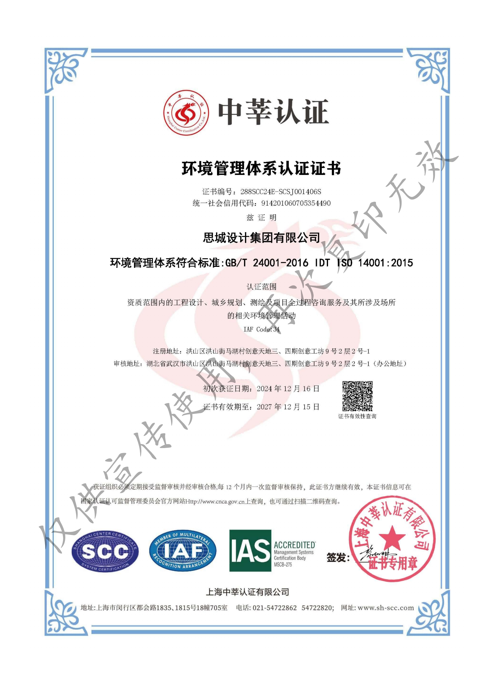 • 環境管理體系認證證書